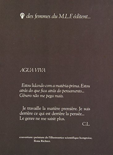 Agua viva lire en ligne - 259 pages. Premier plat illustré en couleurs. Bon état Couv. convenable Intérieur frais In-12 Carré Broché Traduit du brésilien par Regina Helena de Oliveira Machado.
